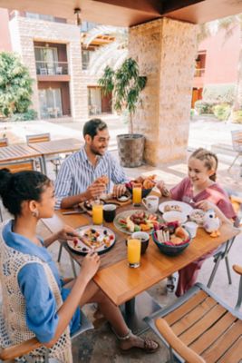 بالإضافة الى شاطئ خاص بطول 150 مترا وعدة برك سباحة، لدينا أيضا مركز للغوص، نادي أطفال وتشكيلة من الرياضة المائية. جدد نشاطك في الحمام البخاري وجرب الاستحمام في دوشات مسبح زارا تالا باي، أو ارتاد الصحراء والمواقع الأثرية القريبة من منتجع موفينبيك ومسبح تالا باي العقبة.