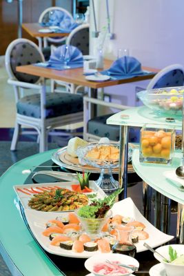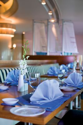 يقع مطعم ذا بلو في طابق الردهة وهو مثالي لتناول الطعام المعتاد في ظل الحاجة إلى تذوق الطعام اللذيذ. ويوجد أيضا مجموعة من الخيارات الشهية حسب الطلب. تعد محطات الطهي الحية والمباشرة والليالي ذات الطابع الرائع من سمات الطهي المميزة لهذا المكان الأنيق.