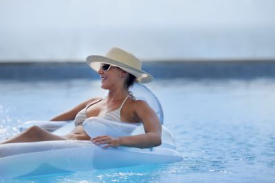 Unsere Pool-Bar befindet sich im Herzen des Hotels im Poolbereich und bietet Erfrischungen, verschiedene Cocktails und Mocktails sowie alkoholfreie Getränke. Für diejenigen, die nach einer kleinen Zwischenmahlzeit suchen, bieten wir eine Auswahl an Snacks wie Pasta, Pizza, Sandwiches, Salate und Desserts sowie Eiscreme. Für die Unterhaltung unserer Gäste werden jeweils am Morgen und am Nachmittag verschiedene Animationsprogramme veranstaltet, zum Beispiel Wassergymnastik und Wasserpolo. Die Pool-Bar ist ein idealer Ort zum ganztägigen Entspannen bei Sonnenschein und sanfter Musik.