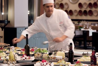 Das Restaurant "Saray" bietet internationale Frühstück sowie marokkanische Gerichte aus der Region in berberisch, arabisch und andalusisch geprägter Atmosphäre. Beginnen Sie Ihren Tag mit einem gesunden mahlzeit und lassen Sie sich von unserem Teemeister einen marokkanischen Pfefferminztee zubereiten. Dies ist der ideale Treffpunkt für Gruppen, denn Sie können Ihr Essen sowohl im Innenbereich als auch im Aussenbereich umgeben von Jasmin, Palmen und Olivenbäumen geniessen.
