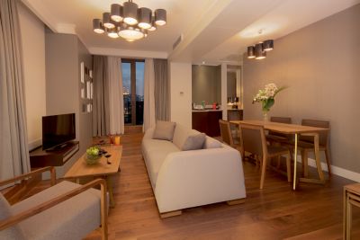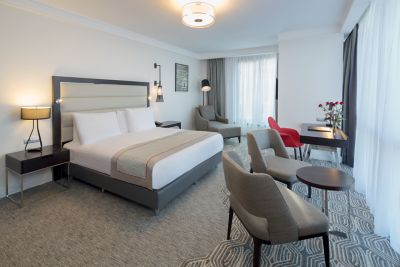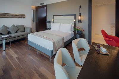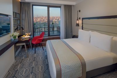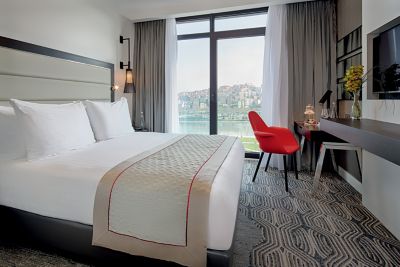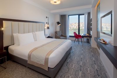 Die 30 m² großen, elegant eingerichteten Zimmer verfügen über deckenhohe Glaswände mit Panoramablick auf das Goldene Horn. Sie sind mit Twin- oder Kingsize-Betten ausgestattet, sowie einer Regendusche, Haartrockner und Vergrößerungsspiegel im Badezimmer.