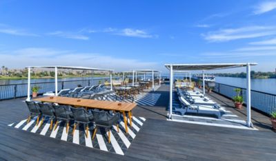 The Mövenpick MS Hamees has a comfortable and contemporary design and is among the largest and best-appointed crafts on the river Nile. Enjoy a truly memorable journey from Luxor to Aswan and experience some of Egypt's most scenic and historical sights with top facilities and attentive staff. Travel in style and enjoy lounging at the swimming pool, reading or playing games in the reading and play room, or enjoying the sun on the sun deck, offering a recreational area as well as a selection of eating and drinking options.