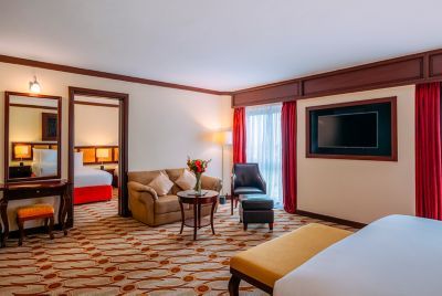 The 1 Bedroom King Apartment can accommodate 2 adults and 1 child or a maximum of 3 guests with an extra bed.