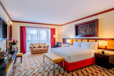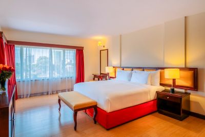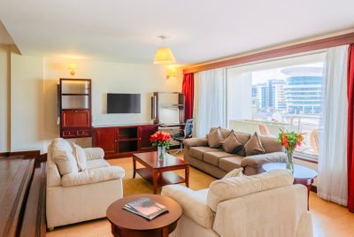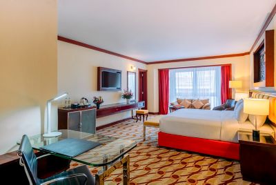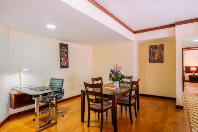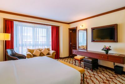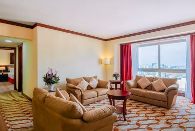 The spacious fully furnished & serviced one bedroom apartment in Mövenpick Hotel & Residences Nairobi is tastefully decorated in warm and neutral tones. It includes a living room, a dining area , one king bed and a balcony. Enjoy a fully-equipped kitchen, 40-inch LED TV in the living room, complimentary Wi-Fi access and en-suite bathroom with separ