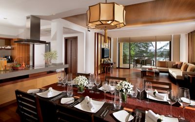Our Three-Bedroom residence in Phuket at Mövenpick Phuket Bangtao are perfect for up to six adults, with a large 248 sqm space that includes three bedrooms, all with their own king-size beds, flat screen TVs, balconies and en-suite bathrooms. A shower, two wash basins, toilet, bidet and hairdryer are provided in all bathrooms, while the master bedr