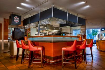 At our Chat Point Bar in Munich, you're invited to savour our Bavarian and American bites until midnight. Stay up to date with sports and news while enjoying the action on our large screen. Our exclusive selection of wines, a variety of fantastic cocktails, and cold beers from regional breweries perfectly compliment your experience. Conclude your day with one of our specialty cocktails and engaging conversations in a relaxed atmosphere.