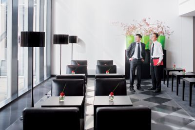 For an informal and cosy atmosphere, visit our café and bar at Mövenpick Hotel Stuttgart Airport. Message Café & Bar is situated on the main boulevard which connects Stuttgart Airport with the fair-trade grounds. Due to its location, it is a convenient meeting point for local and international guests alike, offering friendly service amidst modern decor. In the evenings, Message Café & Bar offers a range of cocktails as well as popular culinary classics. Enjoy drinks and snacks in a cosy ambiance among framed silhouette portraits and a jukebox during your stay in Stuttgart.