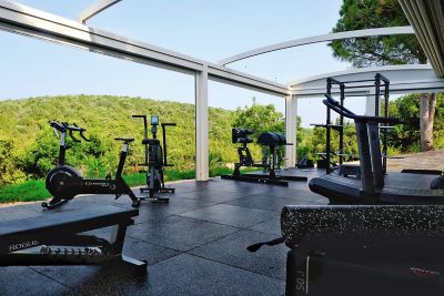 With great surroundings and views, Movenpick Resort Agios Nikolaos Sivota presents an open gym and yoga space.