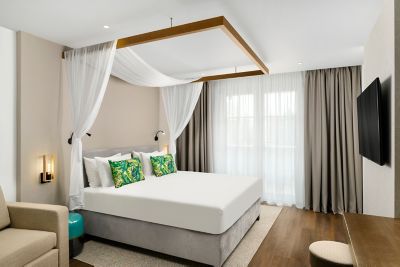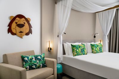 The primary consideration in the design of the hotel's rooms is the comfortable placement and service of children, in addition to allowing parents to enjoy their private sphere, as well. To this end, 109 rooms and suites of various sizes and layouts are at choice, which will also include baby- and child-friendly equipment and furnishings. In addition to their elegance, the communal spaces are perfectly suitable for families to travel, eat and relax with their functionality and thematic experience.