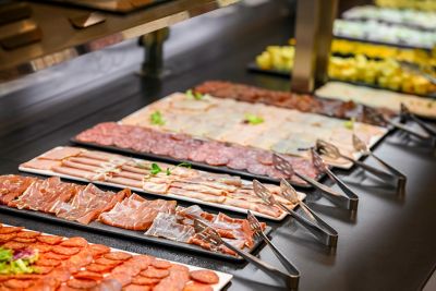 Start your day with our breakfast buffet, featuring a bountiful spread of morning classics, from fluffy pancakes and crispy bacon to fresh fruits and omelets made to order. And when the sun sets, the magic continues with our themed dinner nights. Explore the tastes of Italy, savor the bold flavors of America, journey through the Mediterranean, and celebrate the best of local cuisine, all under one roof.