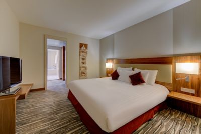 We checked in for two nights in a suite for our family. Arriving to our suite, the room was filthy smelled of smoke and was not of standard. We returned to the front desk and were going to check out to stay at the adjacent Marriott but the young gentleman supervisor was kind and patient and provided us with alternatives. He walked us up to another floor with two adjacent rooms connecting that were impeccably clean, quiet! We were so happy he took the time to bring us to our new room. Hotel is busy but rooms are quiet. Ammenities were great and you are walking distance to many great restaurants. The hotel restaurant breakfast was subpar. Not of standard quality and the evening service was non-existant one night. But otherwise it is a great choice near the airport.