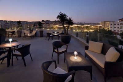 Relish the extraordinary views from Rumors Lounge, our luxurious dining venue in Amman. Featuring a panoramic terrace with umbrellas for shade, this contemporary international restaurant at Mövenpick Hotel Amman provides the ideal setting for a business lunch, social dinner, or celebratory meal. A shisha menu is also available.