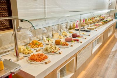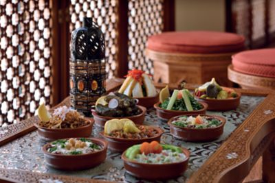 With a breathtaking garden view, Al Saraya restaurant evokes the ambience of a Mediterranean country kitchen featuring warm stonework, arched windows and tiled floors. The restaurant serves all-day à la carte dishes and buffet dining you can choose from. Savour a wide array of cuisines at Al Saraya's breakfast, lunch or dinner buffet with Oriental