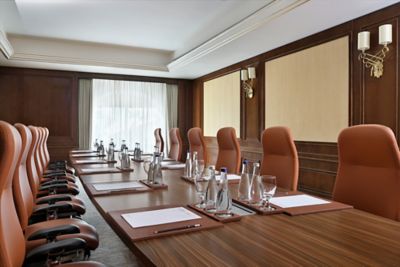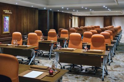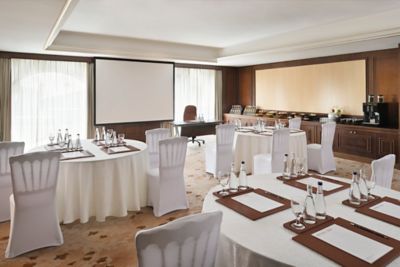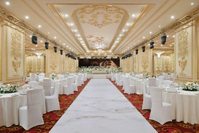 Palladian architecture and an opulent chandelier adds a sense of grandeur and old-world elegance to the Al Karam ballroom. This large open space is the perfect place for you to host your next special event in Jeddah.