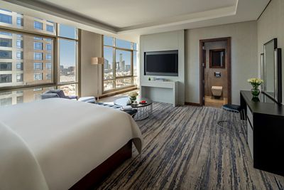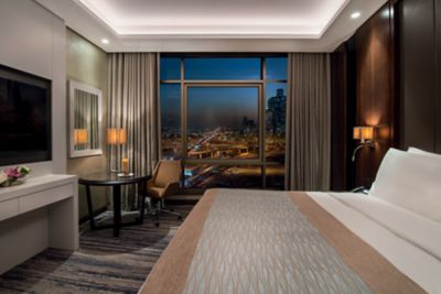The perfect space to unwind right in the heart of Riyadh. Floor to ceiling windows with neutral tones and genuine swiss hospitality. All rooms at Mövenpick Hotel & Residences Riyadh feature air conditioning, luxury amenities, in room safe, work desk, free Wi-Fi, 55inch TV access to Fitness centre, 24 hr room service.