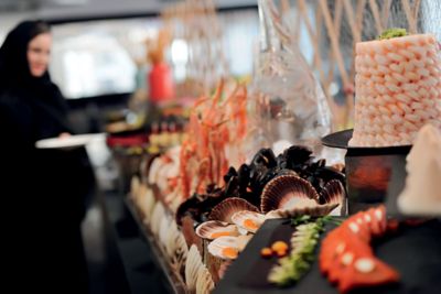 Translated from Arabic as ‘the place’, Makan is undoubtedly the spot to enjoy cuisines from around the world when visiting Dubai. Situated on the hotel's lobby level, the restaurant is centred around a buffet and cooking station where the kitchen team customises the daily specials for each guest. Nothing is too much trouble for an attentive team of