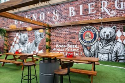 Set on the terrace of Mövenpick Hotel Jumeirah Beach, right along the bustling Jumeirah Beach Road, Bruno’s Biergarten is a playful escape. Guests will discover rustic wood and Alpine textures, lush green grass, dreamy string lights, bold murals, and a quirky food truck. With live music filling the air and a festive atmosphere under the open sky, every detail has been designed to transport diners straight to the heart of Bavaria.
