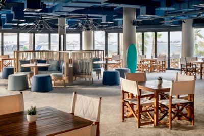 Hispanic, East Asian, European and U.S. cuisines are blended in this beachside restaurant on Al Marjan Island. Taking inspiration from the mixed flavours of the Californian coast, the à la carte menu balances healthy eating with satisfying tastes. Creamy and indulgent desserts and smooth rum cocktails complete the beachfront feel of this trendy and inviting surf shack diner.