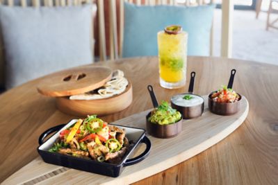 Surf’s up at the Beach House. Enjoy feet in the sand seating and a poolside atmosphere, creating the casual California Coast vibe in this lunch and drinks hangout. Our relaxed and stylish RAK beach restaurant at Mövenpick Resort Al Marjan Island awaits with exciting dishes and a stunning view of the pristine water.