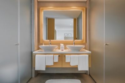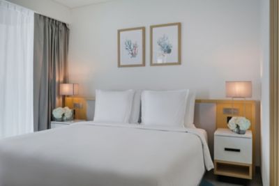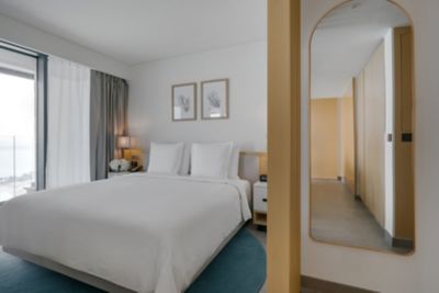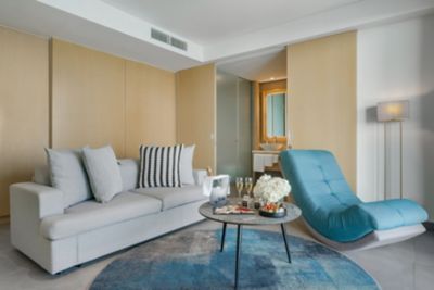 Escape to beachfront bliss in our Beach View Corner Suite, offering panoramic Arabian Gulf views, a private balcony and elegant interiors with a king bed and luxe bath amenities.