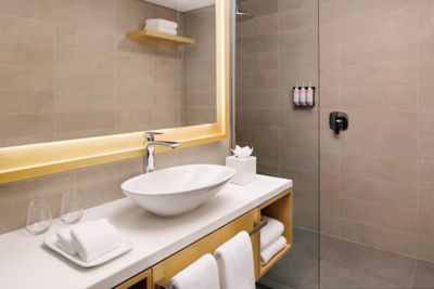Bathe in the warm glow of an Arabian sunset on the spacious private balcony as the sun sets along the Al Marjan Island boulevard. This luxury hotel room in Ras Al Khaimah features a king-size bed, rain shower and complimentary Wi-Fi. Most Deluxe Island Sea View King Rooms come with a sofa bed for easy children's accommodation, making our 5-star resort perfect for a family holiday.