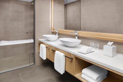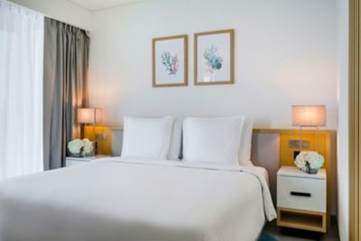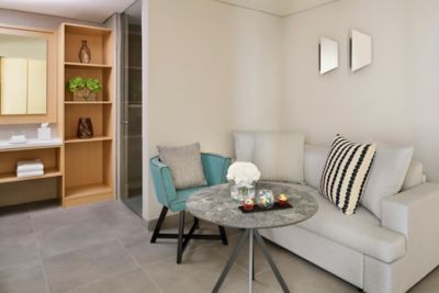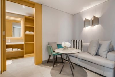 Open the door to space and convenience in our Family Room on Al Marjan Island. Each room features a separate king bedroom, living area with a sofa bed and full access to a range of kid's facilities. Enjoy uninterrupted views of the Arabian Gulf and a private balcony in this luxury hotel room at Mövenpick Resort Al Marjan Island. This is the perfect place to prepare for memory making days.