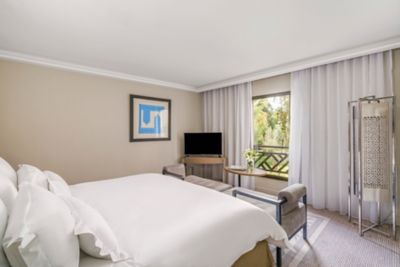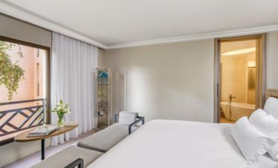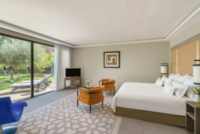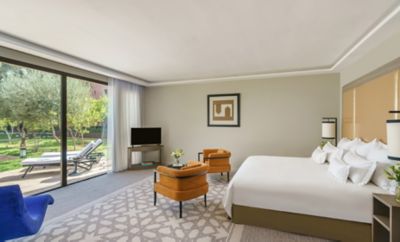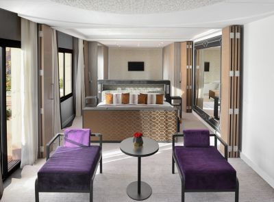 Unique et spectaculaire, le Penthouse du Mövenpick Hotel Mansour Eddahbi vous promet 290 m2 de raffinement dans un décor de rêve : un salon privé avec canapé, 2 chambres avec respectivement 1 lit king-size et 2 lits simples, une piscine privée et une belle terrasse… laissez-vous tenter par des moments exceptionnels.
