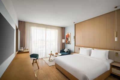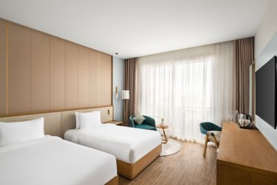 Garden views and a large comfortable space of 60 sqm are highlights of our Deluxe Garden View Twin Rooms. These modern hotel rooms also feature a balcony or terrace, which adds to the relaxing and comfortable ambience. Along with in-room controlled air conditioning, the rooms offer twin beds and an ensuite with a bathtub and shower.
