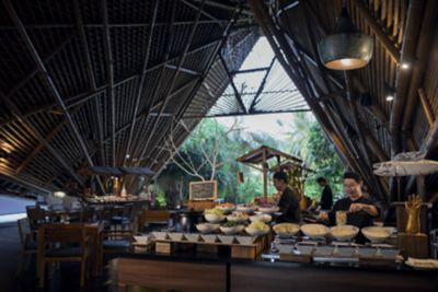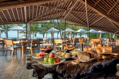 Gather for delicious food in a breezy space under an atmospheric bamboo roof. At our charming market-style restaurant ONU Marché, guests of Mӧvenpick Resort Kuredhivaru Maldives can enjoy à la carte and buffet breakfasts and dinners, as well as intriguing signature weekly theme nights.