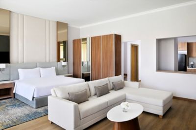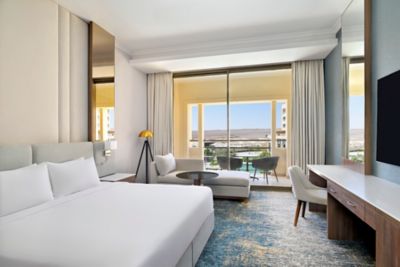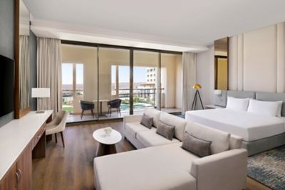 Elevate your stay in our Deluxe Room at Mövenpick Hotel Wa’ad Al Shamal, featuring 42 sqm of stylish comfort and serene pool views. This beautifully appointed room in Turaif includes a queen-size bed, a plush sofa and a private balcony, ideal for unwinding in a scenic setting.