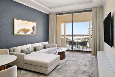 Designed for relaxation and convenience, guests can enjoy the comforts of thoughtful amenities including complimentary high-speed WIFI, a secure in-room safe, coffee and tea making facilities, and a bath or shower for a truly relaxing retreat in this 5-star hotel in Wa’ad Al Shamal.