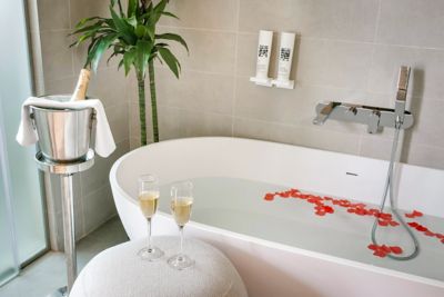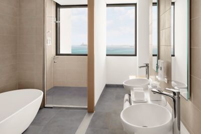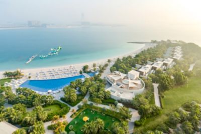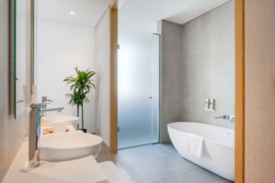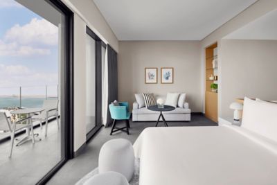 Stay in the unique elegance of a Panoramic Suite on Ras Al Khaimah's longest suspended bridge. Rise to the top floor of our exciting 5-star resort Mövenpick Resort Al Marjan Island. Each luxury suite features a king-bed, sofa bed, large private balcony, a 55-inch LED TV, and both a walk-in rain shower and bathtub, whilst also offering high-speed, complimentary Wi-Fi.