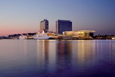 Voor het hotel bevindt zich een tramhalte. Neem tram 26 (richting IJburg) vanaf het Centraal Station en stap uit bij de eerste halte: "Muziekgebouw/Bimhuis".