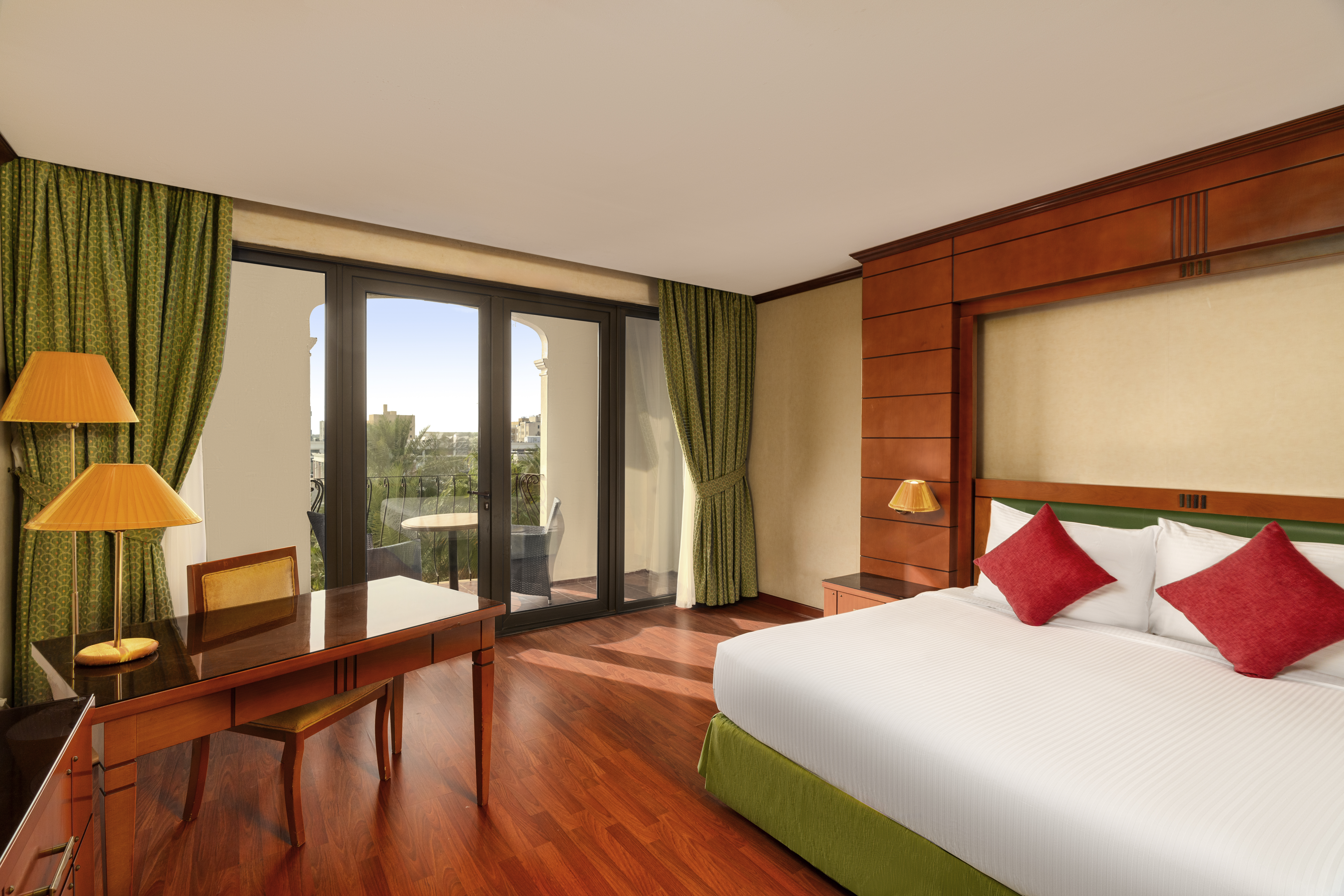 这间 32 平方米的客房配备 2 张单人床、免费无线网络,带阳台和会客区,可欣赏城市或泳池景观。